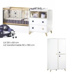 Découvrez cette chambre trio de la collection Access de la marque Sauthon Meubles. Elle est composée du lit bébé 60×120 cm, de la commode à 3 tiroirs de l’armoire 2 portes de la même collection. Vous allez adorer le design chic et élégant de la collection Access ! Pratique, vous pourrez fixer un plan à langer de la même collection sur la commode (vendu séparément) pour une chambre tout en douceur et harmonie.
