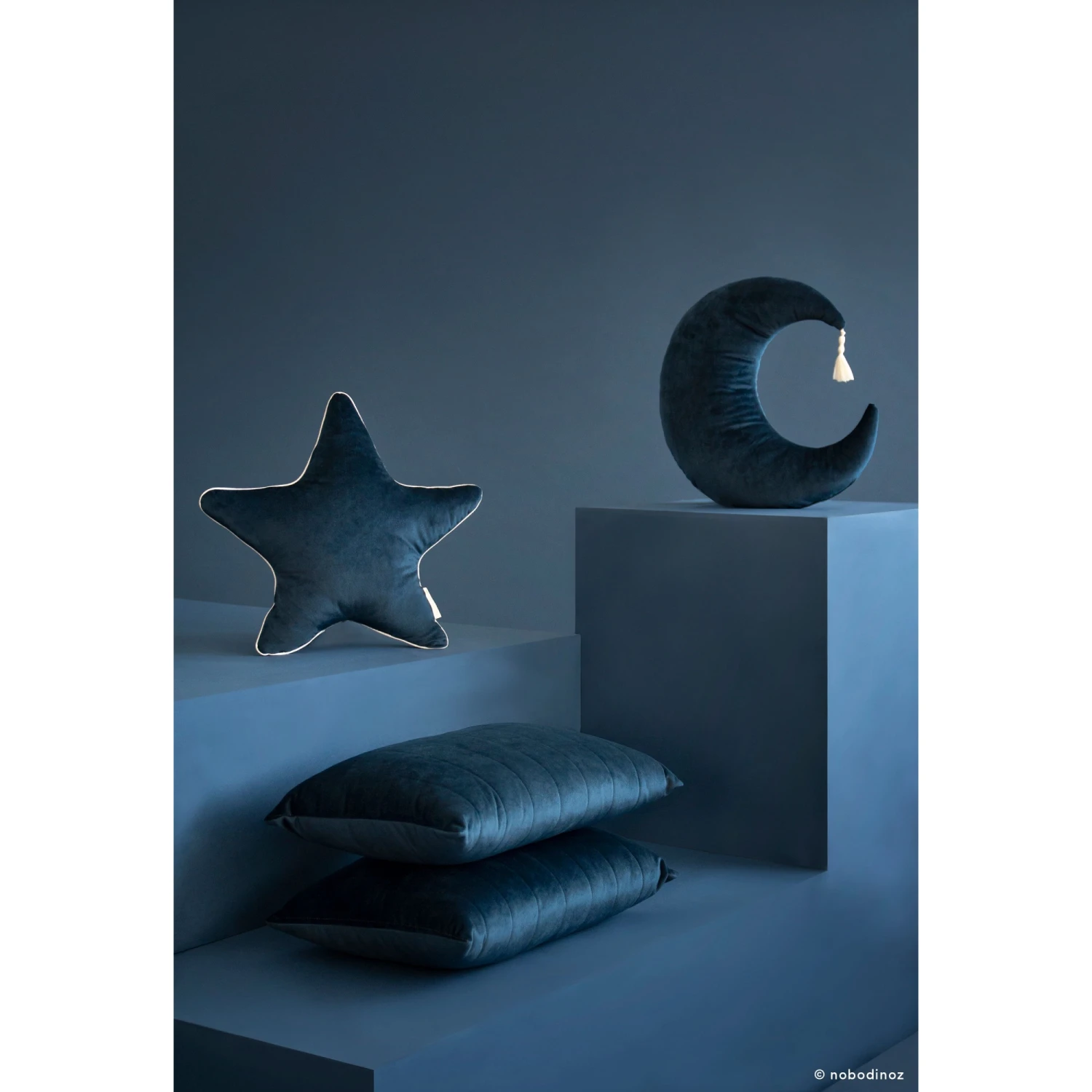Découvrez le coussin étoile de couleur night blue de la collection Aristote de la marque espagnole Nobodinoz. Il a été réalisé en velours issu de fibres textiles recyclées. Pour la chambre de bébé, le salon ou la salle de jeu, ce petit coussin étoile apportera une touche déco originale et vous garantit un achat écoresponsable.
