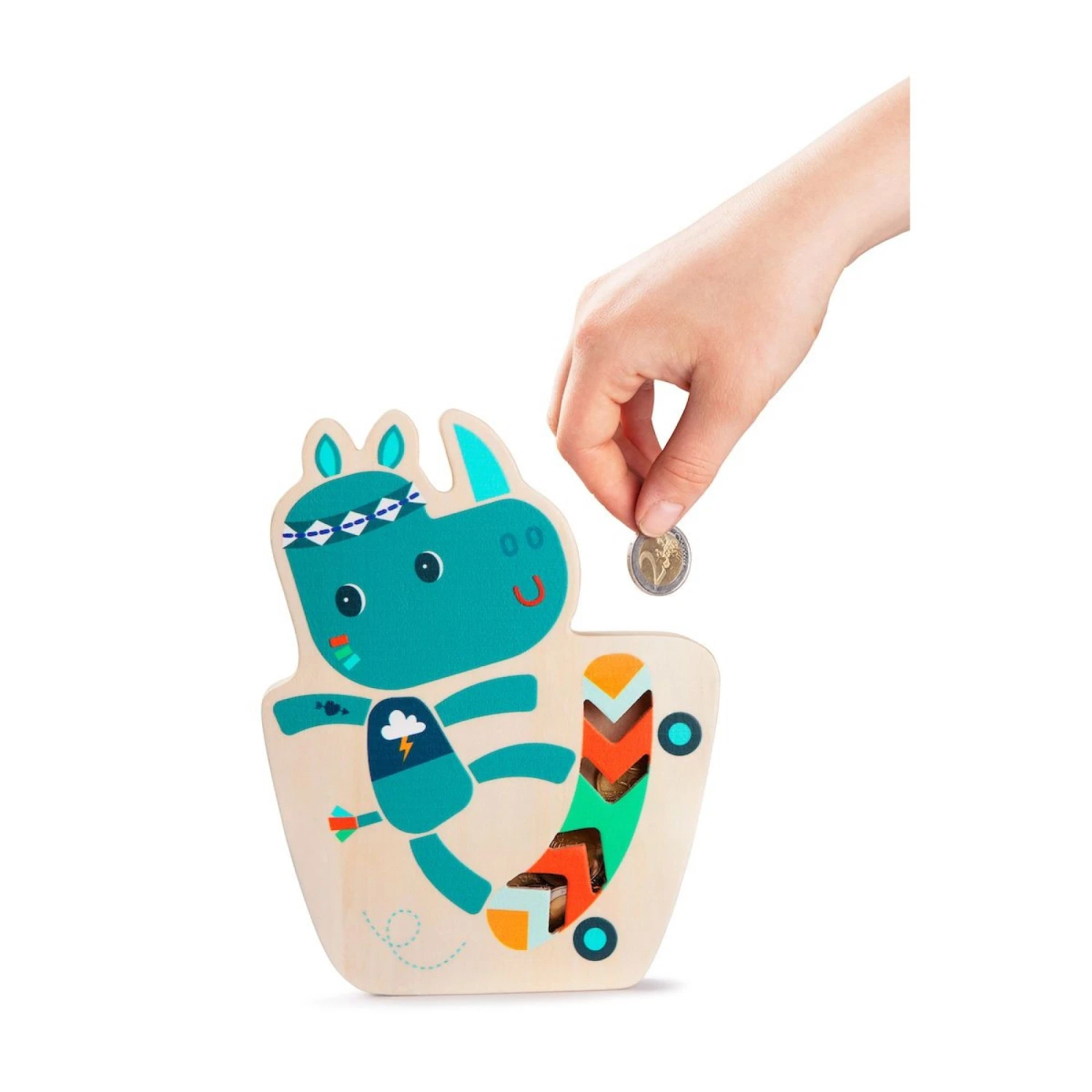 Offrez la tirelire enfant Marius le rhinocéros de la marque Lilliputiens à votre petit bout ! Marius le rhinocéros garde précieusement les petits sous de votre enfant. Et grâce aux petits trous, votre enfant peut voir combien de pièces contient cette jolie tirelire !