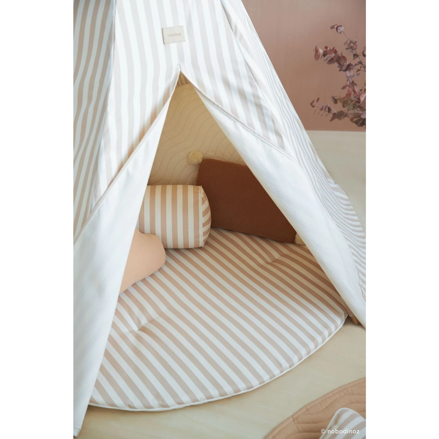 Découvrez l’emblématique tipi Arizona Taupe stripes natural, de la marque Nobodinoz. Votre enfant va adorer lire, jouer, s’amuser et rêver à l’intérieur. Votre enfant vivra comme un aventuriers toutes les histoires qu’il pourra créer au quotidien. Il s’accordera aussi bien à la chambre de votre enfant, à sa salle de jeux et qu’à votre salon.